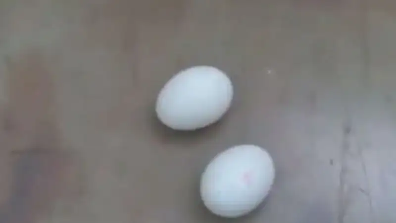 "Сегодня на работе показали пластмассовые яйца из Китая. Теперь и до Казахстана дошло. Вот они как ваньки-встаньки на столе пляшут. Специально расколупали, а внутри гель. Яйцо с такой печатью. Когда сваришь то белеют. Смотрите аккуратно покупайте", - говорит человек за кадром.