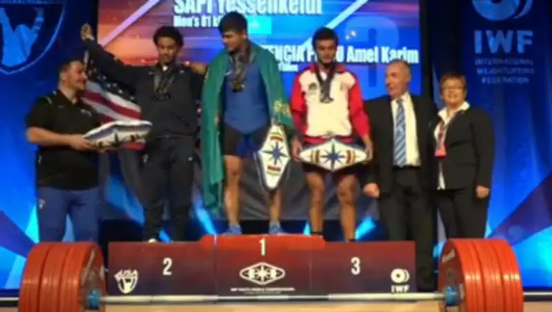 На соревновательный помост юношеского чемпионата мира по тяжелой атлетике, проходящего в Лас-Вегасе (США) вышел Есенгелди Сапи в весовой категории до 81 кг, передает Zakon.kz.