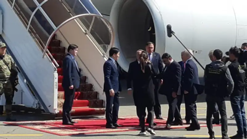 Спустившись с трапа, Нурсултан Назарбаев пошел к молодым людям и лично поблагодарил их за неожиданный, но очень приятный прием.