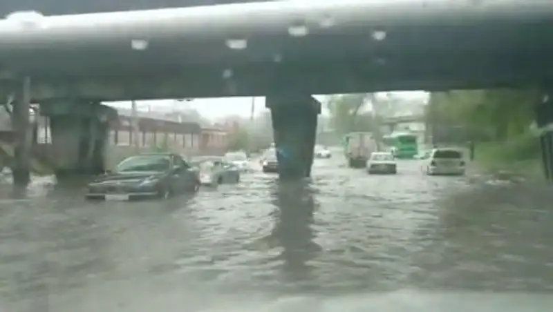 Уличные пловцы и затонувшие автомобили: ливень в Алматы