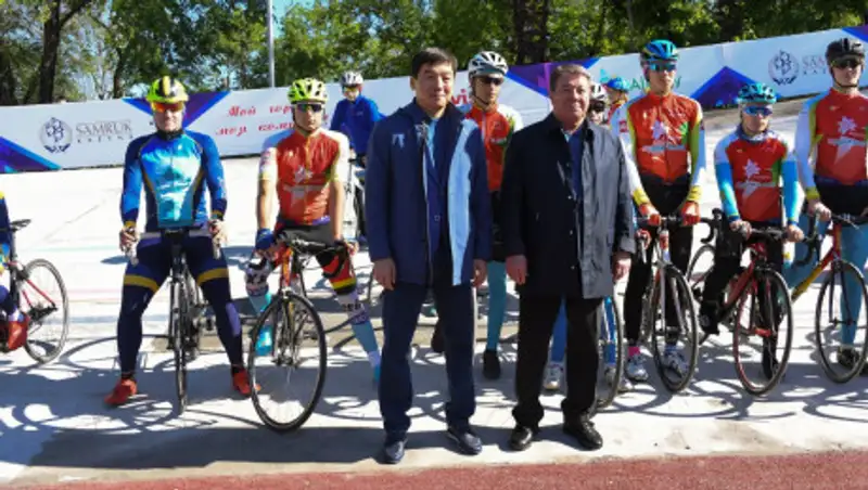 Открыли велотрек председатель правления АО ФНБ "Самрук-Қазына" Ахметжан Есимов и Аким города Алматы Бауыржан Байбек.
