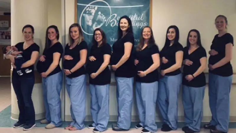 В конце марта сообщалось, что в американском городе Портленд, штат Мэн, забеременели сразу девять медсестер родильного отделения больницы. Медицинское учреждение опубликовало в Facebook фотографию, на которой позируют восемь из девяти беременных женщин. Каждая держит в руках лист бумаги с ожидаемым сроком родов.