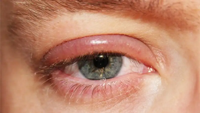 1. Простой. Он выглядит как покраснение и отёк века, особенно в области его края. Кожа века начинает зудеть, через время начинают выпадать ресницы.