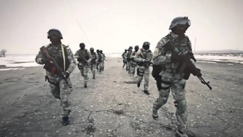 Спецназовцы отдыхали у фонтана после разгона толпы в Бишкеке