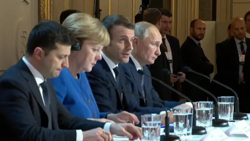 Участники саммита "нормандской четверки" в Париже выразили приверженность установлению полноценного перемирия в Донбассе до конца 2019 года. Кроме того, четверка выступила за внесение изменений в конституцию Украины на основе "формулы Штайнмайера", передает ТАСС.