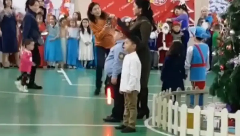 Полицейский на новогоднем утреннике стал звездой Интернета, сообщает zakon.kz.