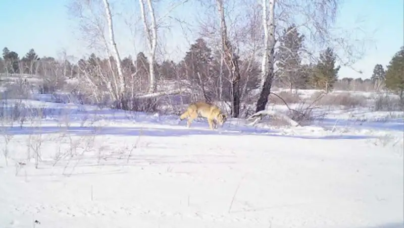 В Костанайской области в фотоловушку попалась волчица с GPS-передатчиком