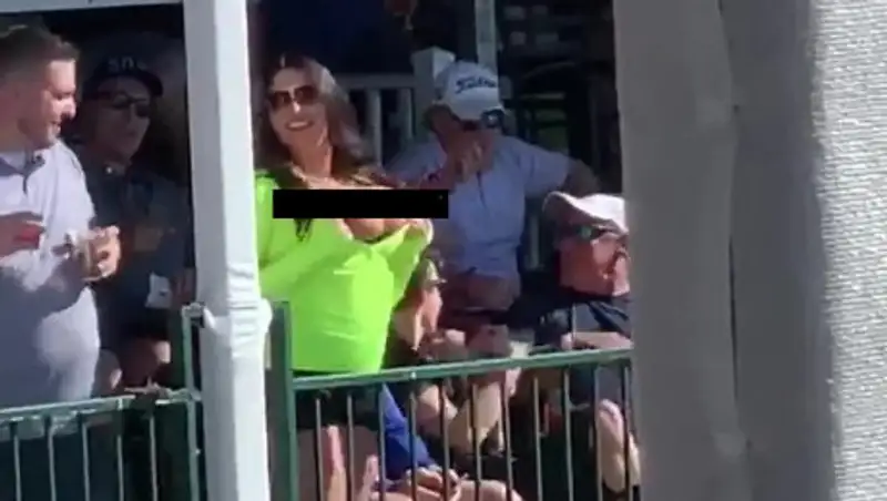 Пышногрудая девушка нестандартным образом отвлекла одного из игроков на турнире по гольфу Waste Management Phoenix Open 2020, входящего в PGA тур. То ли ей стало жарко, то ли ей так приглянулись гольфисты, но она в один момент решила показать им... свои "мячики", передает zakon.kz.