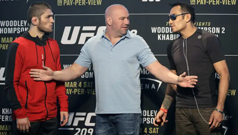 На пресс-конференции перед боей между Хабибом Нурмагомедовым с Тони Фергюсоном состоялась дуэль взглядов, сообщает zakon.kz.