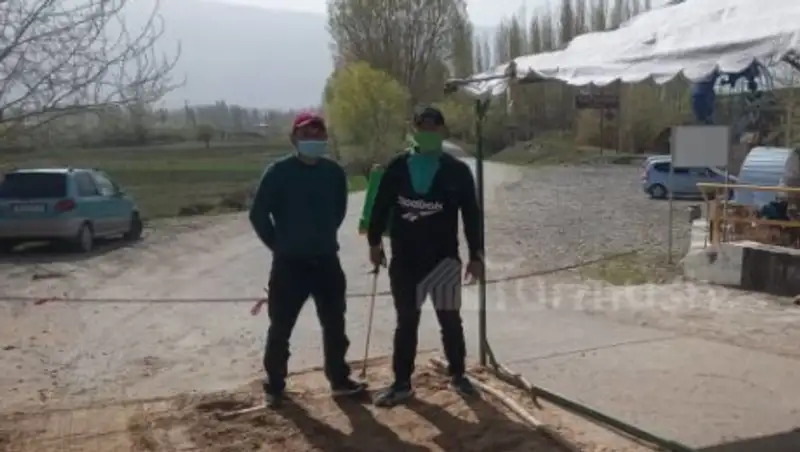 Ради безопасности нашего села молодежь села собралась и, посоветовавшись, установила пост. У нас есть мост, на обоих концах которого мы закрыли проезд цепями. В отечении суток дежурит молодежь определенного года рождения, а на следующие - другого. Вот так меняемся. Сначала дежурство начали сельчане, 1989 года рождения. Сегодня дежурят рожденные в 1986 году. На посту просто не стоим - дезинфицируем проезжающие машины, - рассказал Адыл Калилбай уулу.