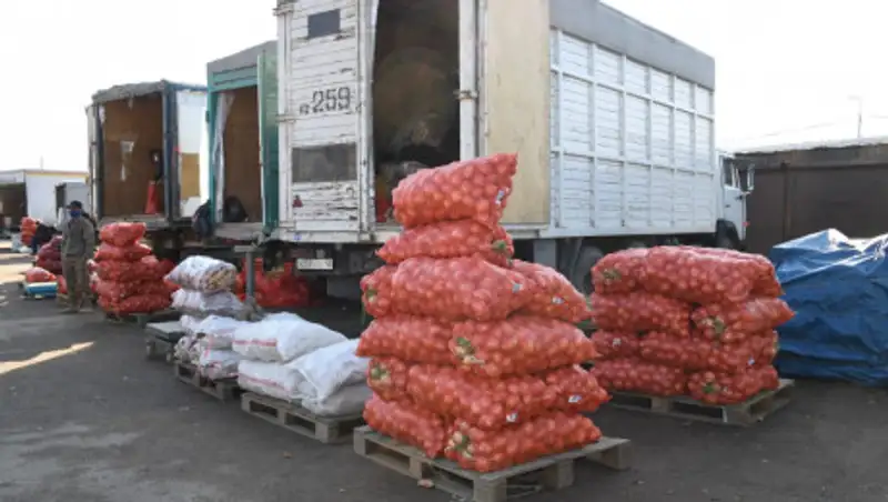 На рынок заезжают как из города Алматы так и со всех других регионов. В частности цен, то цены стабильны. Нами совместно с отделом предпринимательства Карасайского района проводится мониторинг. Данная работа ведется на постоянной основе. Всего на рынке реализуется более 50 наименований продукции. Имеющегося на складах товара, хватит примерно на полгода. Поэтому повода для беспокойства нет, - заверил Патов.