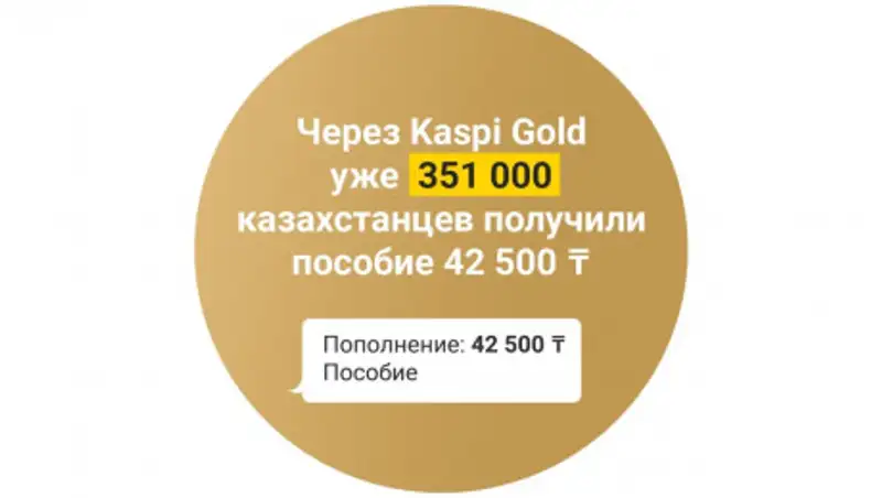 Через Kaspi Gold 351 тысяча казахстанцев получили пособие 42 500 тенге