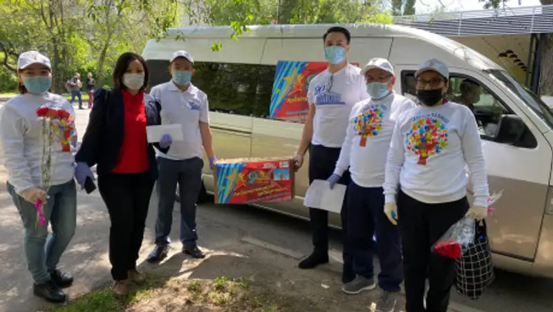 Национальное волонтерское движение "Акселератор добра: Ізгілік елшісі" совместно с Казахским национальным педагогическим университетом имени Абая 6 мая 2020 года в канун 75-летия Великой Победы в рамках акции "Наша Победа!" провели городскую благотворительную акцию "Ардагерлерімізді ардақтайық" (Давайте чтить наших ветеранов), сообщает zakon.kz.