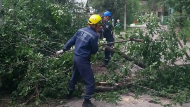 Ликвидационно-восстановительные работы последствий грозы и сильного ветра, накрывших Алматы вечером 14 мая, продолжаются, сообщает zakon.kz.