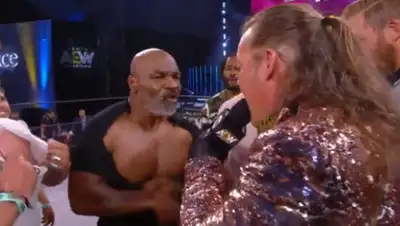 Он вышел на ринг, где начался конфликт с канадским рестлером Крисом Джерико. Боксер разорвал свою майку и затеял массовую драку.