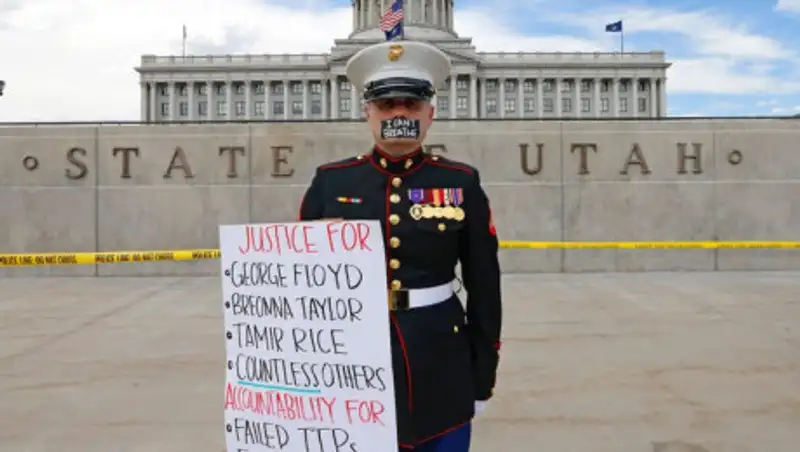 Ветеран морской пехоты США Тодд Уинн поддержал протест Black Lives Matter. В парадной форме и с заклееным ртом он простоял три часа перед Капитолием штата Юта. Из-за жары его ботинки расплавились. Об этом пишет Insider, передает zakon.kz.