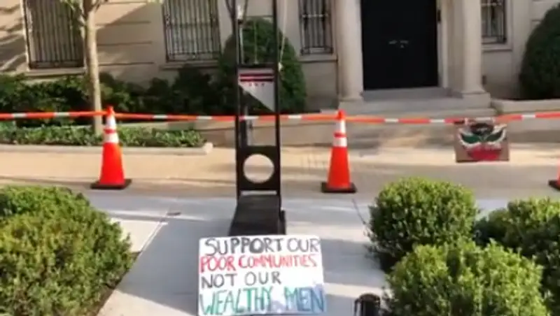 DC protesters have set up a “guillotine” in protest of Jeff Bezos in front of his complex in DC pic.twitter.com/VZ0AWTJqaV