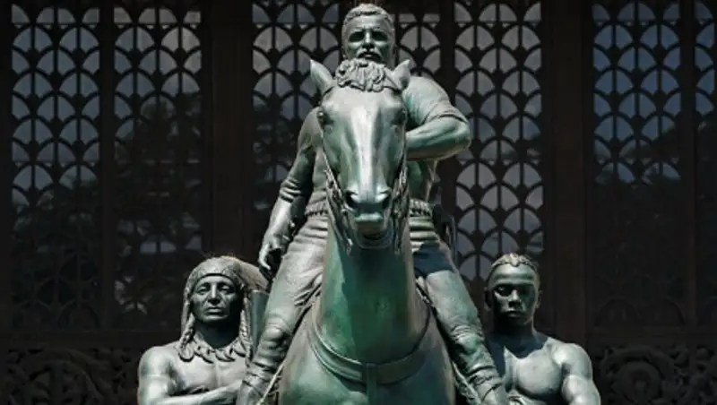Памятник Рузвельту, который находится перед Американским музеем естественной истории в Нью-Йорке, уже не в первый раз становится объектом вандализма. Протестующих возмущает, что чернокожий человек и индеец стоят у ног президента США. Недавно мэрия Нью-Йорка подтвердила, что памятник уберут, так как он действительно изображает чернокожего и коренного американца как "угнетенных и расово неполноценных".