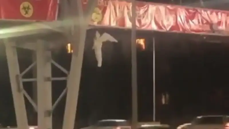 На мосту по Аль-Фараби "повесился" ангел: полиция Алматы ищет авторов
