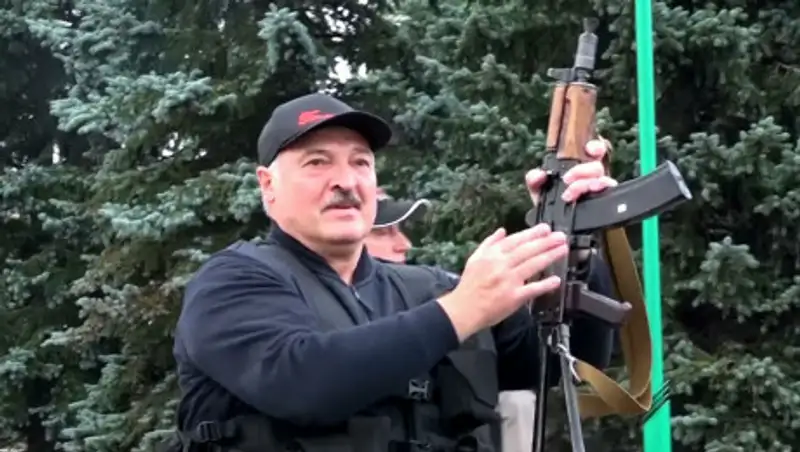 23 августа во время акции протеста ряд СМИ опубликовал фотографии Лукашенко с автоматом "Калашникова" в его резиденции.
