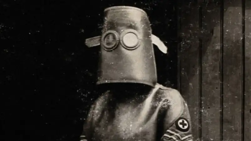 В ходе Первой мировой войны солдатская форма вынуждена была измениться для защиты от химического оружия. Эти старые газовые маски вызывали ощущение сильной тревоги. Кроме природного страха, который мы все испытываем при виде деформированного или скрытого лица, противогаз пробуждает жгучий ужас, ассоциируемый с разрушительным использованием химического и биологического оружия.