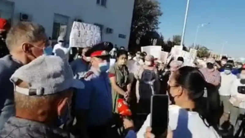 Вышедший к людям аким Жылыойского района Халел Жамалов призывал всех успокоиться и проявить терпение.