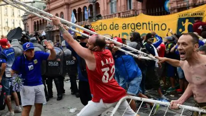 По данным портала Infobae, власти по неизвестным причинам решили ограничить возможность попрощаться с великим футболистом, что вызвало вспышку гнева болельщиков. Начавшиеся беспорядки удалось остановить только после того, как полиция применила слезоточивый газ и водометы.