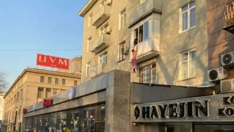 В Казнете появились фото с висящим на балконе парне, передает zakon.kz.