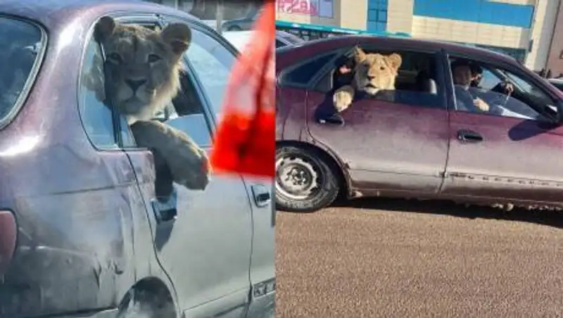 Льва в машине засняли в Караганде: комментарий Минэкологии