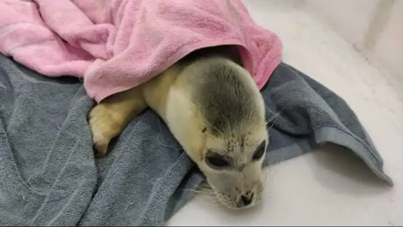 Милота: спасенный на берегу Каспия малыш-тюлень купается в бассейне