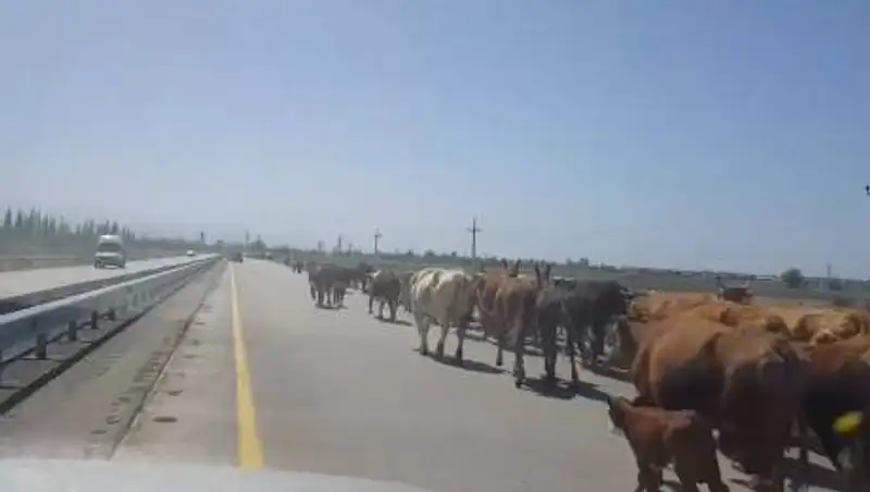 Очевидцы сняли на видео стадо коров на платном участке трассы Алматы-Хоргос, передает zakon.kz.