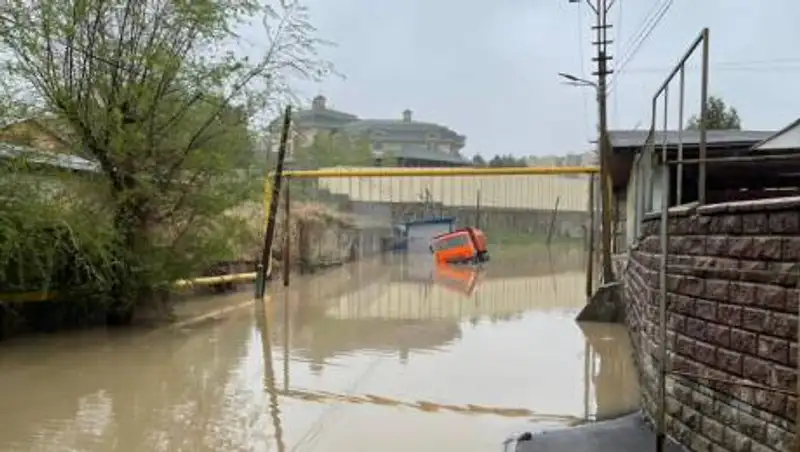 Насосы не справляются: в Баганашыле затопило улицу вместе с КамАЗом