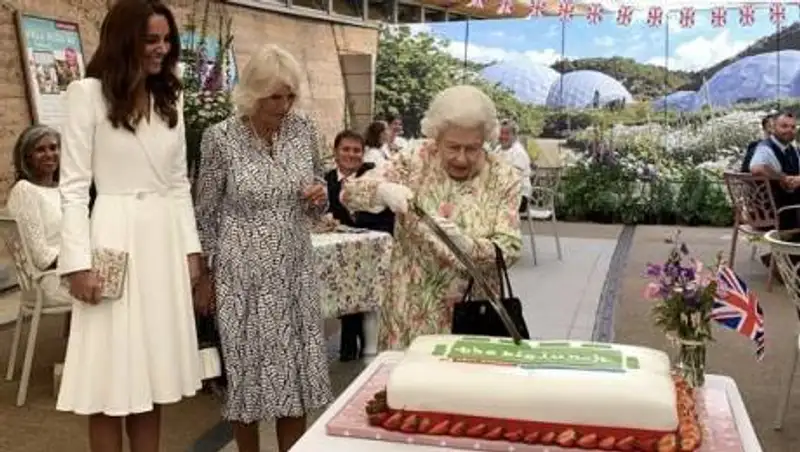 Королева Великобритании Елизавета II разрезала торт церемониальной саблей на официальном мероприятии в графстве Корнуолл, сообщает zakon.kz.