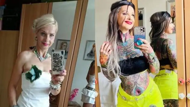 Однажды Керстин опубликовала фотографию «до» и «после» татуировок. За пять лет кожа ее тела покрыта рисунками на 95%.