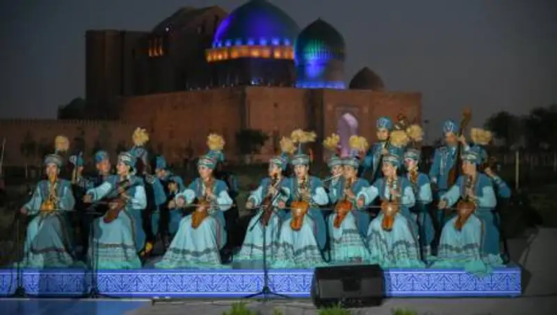 По словам специалистов, при изменении оптики и световых характеристик видны различные элементы эпиграфики, то есть каллиграфические надписи на стенах мавзолея. Именно этот удивительный вид мавзолея станет главной особенностью освещения. На торжественном вечере, в Ботаническом саду возле исторического мавзолея выступили оркестр казахских народных инструментов имени "Сугир" областной филармонии им.Ш. Калдаякова, также артисты театра "Астана Балет" и известные певцы. пресс-служба акима Туркестанской области
