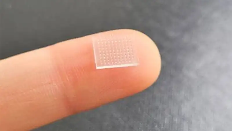 Главное отличие этого пластыря от обычных лекарственных пластырей - наличие на полимерной подложке напечатанных на 3D-принтере игл, длины которых хватает лишь, чтобы дотянуться до кожи и доставить вещество.