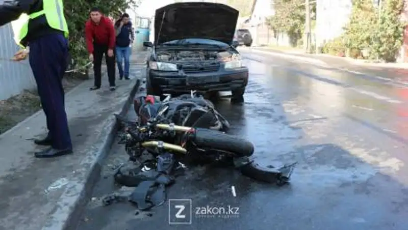 В Алматы летевший на большой скорости мотоциклист столкнулся с автомобилем