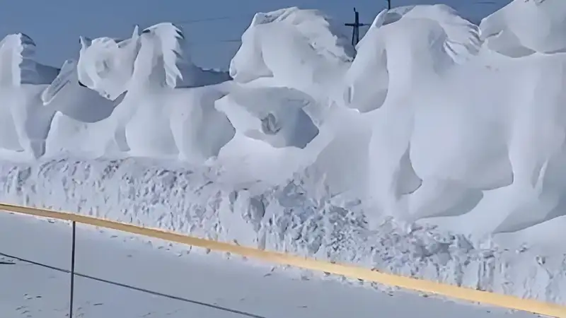 Скачущий табун из 12 снежных лошадей появился в Якутии