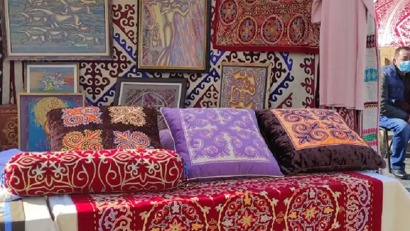 На площади ремесленники показывали свое мастерство. Они продавали национальные украшения, поделки, одеяла и другие атрибуты быта.