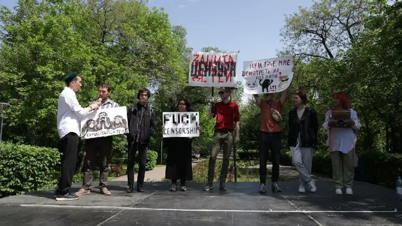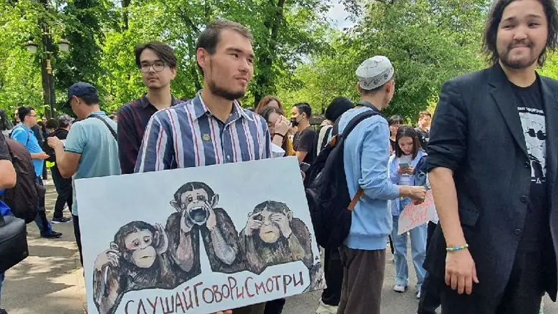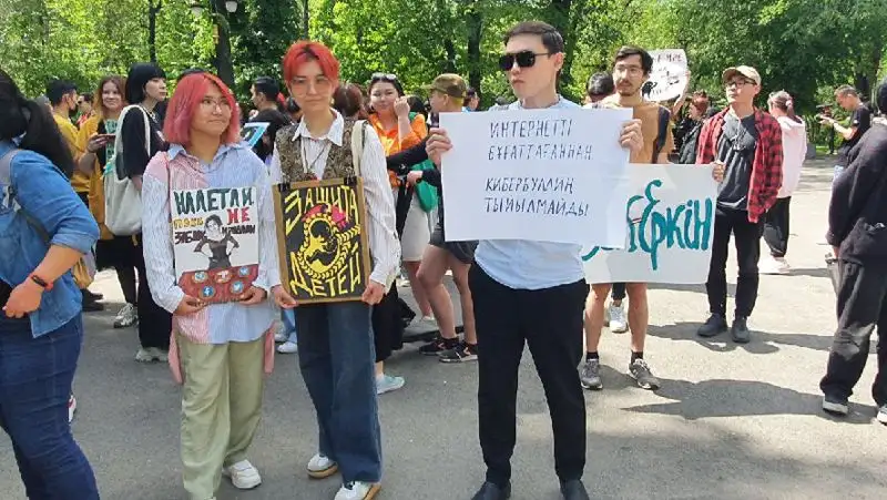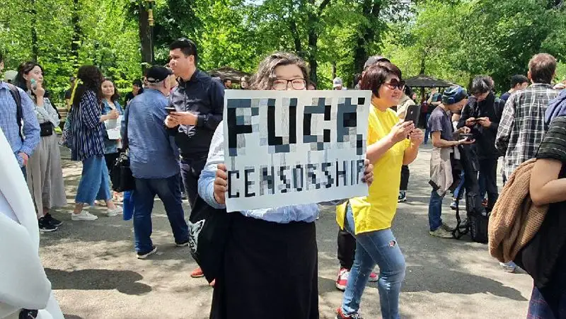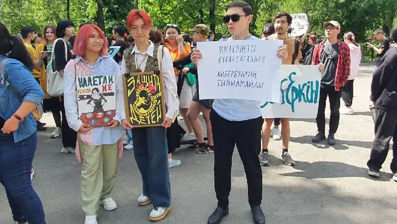 В Алматы прошел санкционированный митинг против блокировок социальных сетей и принятия поправок по регулированию контента в соцсетях.