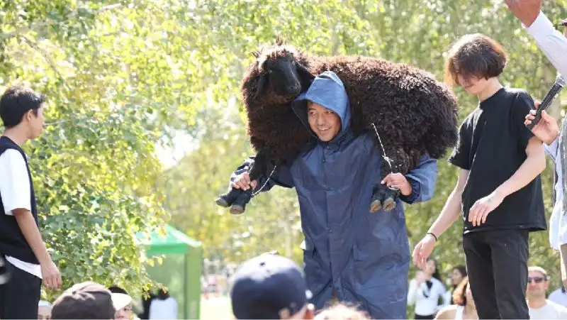 На одной из локаций идет состязание в приседании с бараном на шее. В этих спортивных играх может принять участие любой желающий.