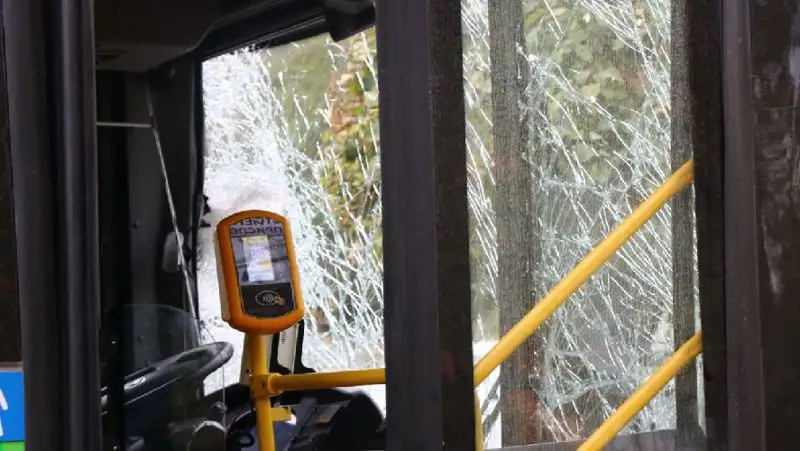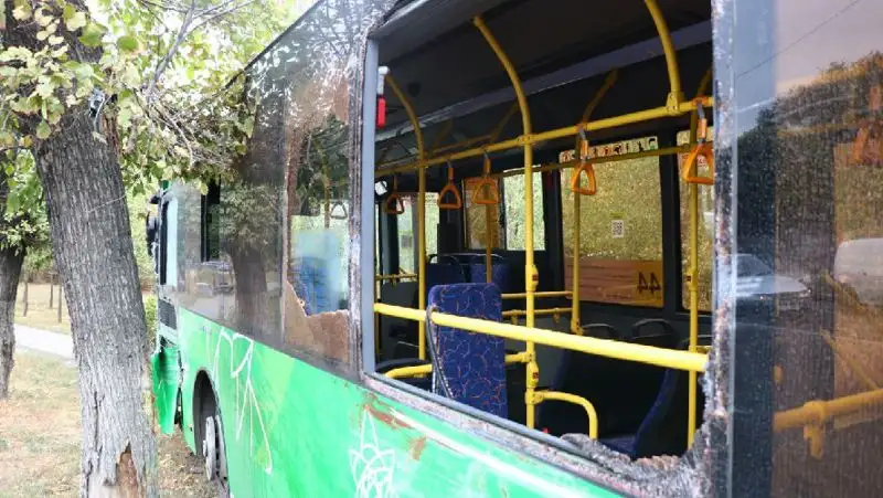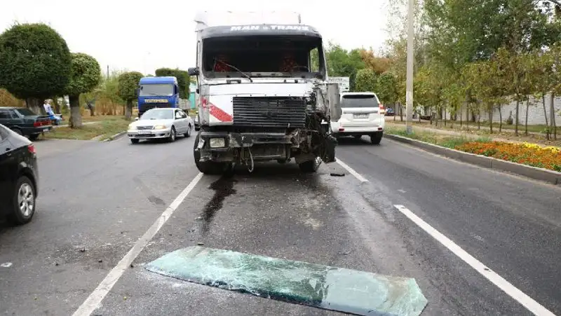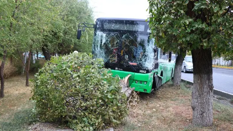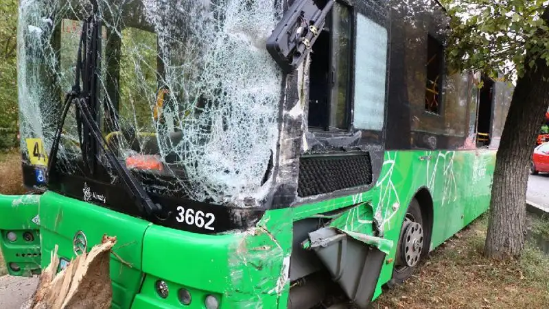 В Алматы автобус столкнулся с грузовиком и вылетел на тротуар