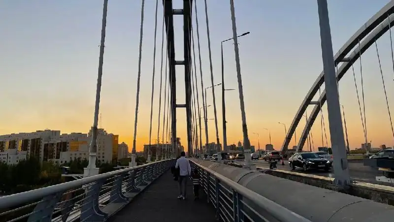 А это закатное небо с моста по улице Сарайшык. Здесь можно увидеть, как красиво солнце прячется за горизонт.