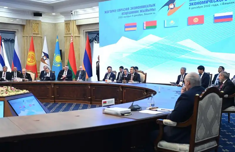Для участия в заседании Высшего Евразийского экономического совета президент Казахстана Касым-Жомарт Токаев с рабочим визитом прибыл в Бишкек 9 декабря 2022 года.