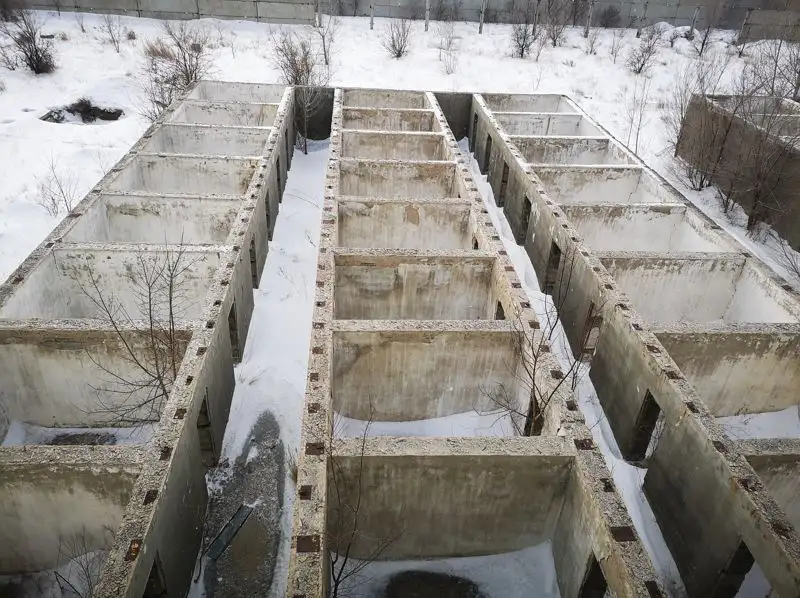 Но мы только в начале пути и сквозь сугробы пробираемся к главному объекту – четырехэтажному зданию, где должны были проводить большую часть времени заключенные. Чтобы вы понимали, только его площадь составляет 29312,08 кв. м.