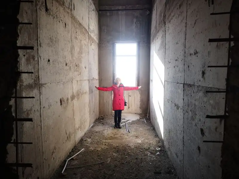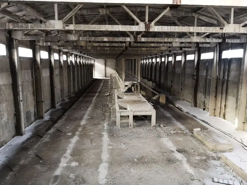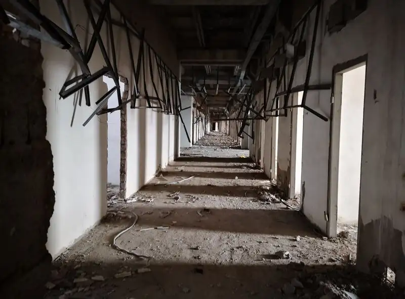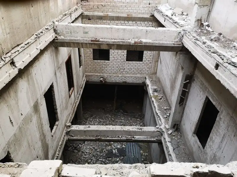 Среди "достопримечательностей" – водонапорная башня, которую можно купить за 2,2 миллиона тенге. Есть котельная, общежитие гостиничного типа. Прокладывали даже водопровод и проводили тепло. Также в нижнем ярусе строители нашли подземные галереи, ходы. Предположительно, их использовали для военпрома, тайно работавшего под вывеской химзавода. Однако заключенные могли использовать тоннели для побегов. Поэтому их завалили бетонными блоками и туда не проникнуть. Поэтому мы с облегчением покидаем здание и выходим на свежий воздух.