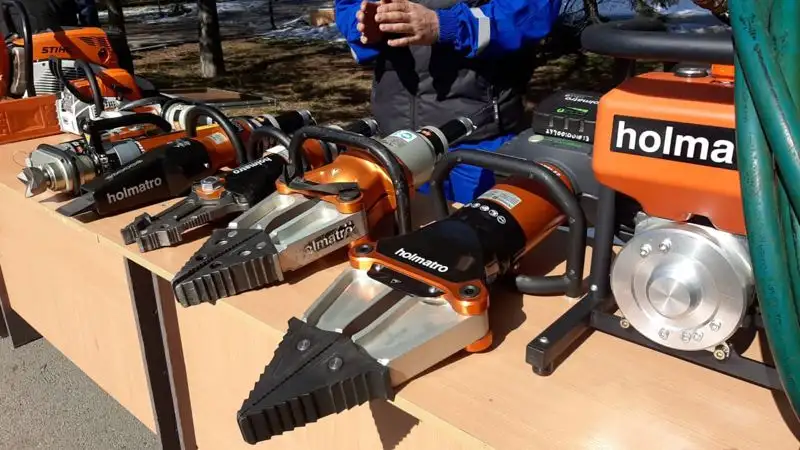 "В нашем отряде есть аккумуляторное оборудование – расширители, резаки. Гидравлические инструменты, комбинированные инструменты – комби резак. Он режет, расширяет, стягивает, сжимает. Расширитель для подъема груза до 40 тонн. Гидроклин для раскрытия щелей, домкрат, который поднимает 22 тонны. Имеются специальные подушки для больших грузов", – рассказал Адильхан Балтабай.