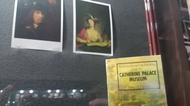 Помимо этого, на выставке экспонируются открытки с репродукциями шедевров живописи, а также обширная коллекция значков.