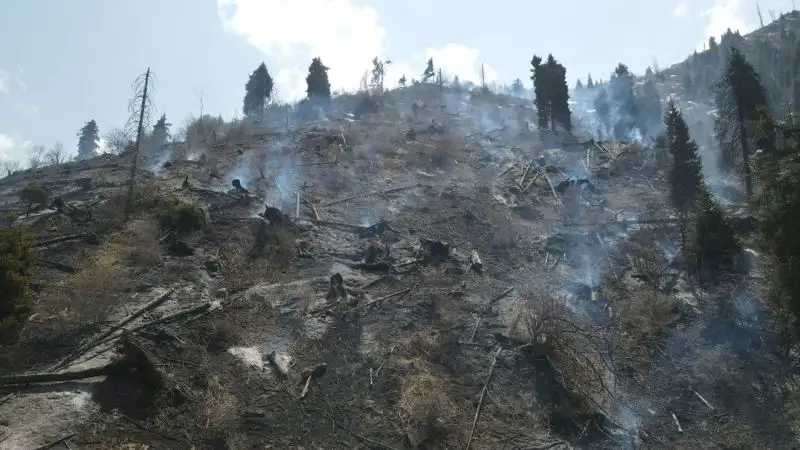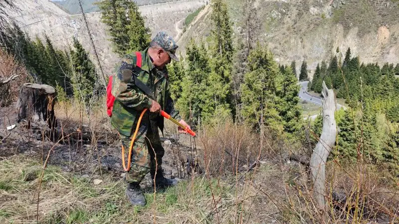 С раннего утра 9 мая сотрудники "Иле-Алатауского национального парка" продолжили работу по тушению возгорания. Они распиливали поваленные деревья с помощью бензопил, окапывали и увлажняли очаги тления с применением ранцевых аппаратов.