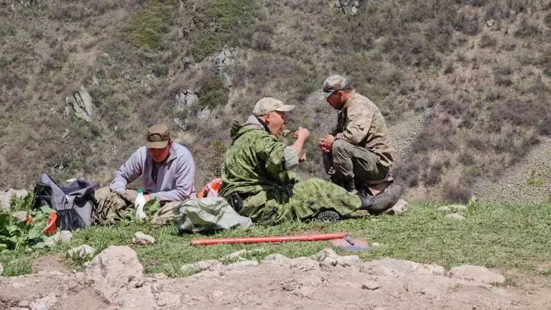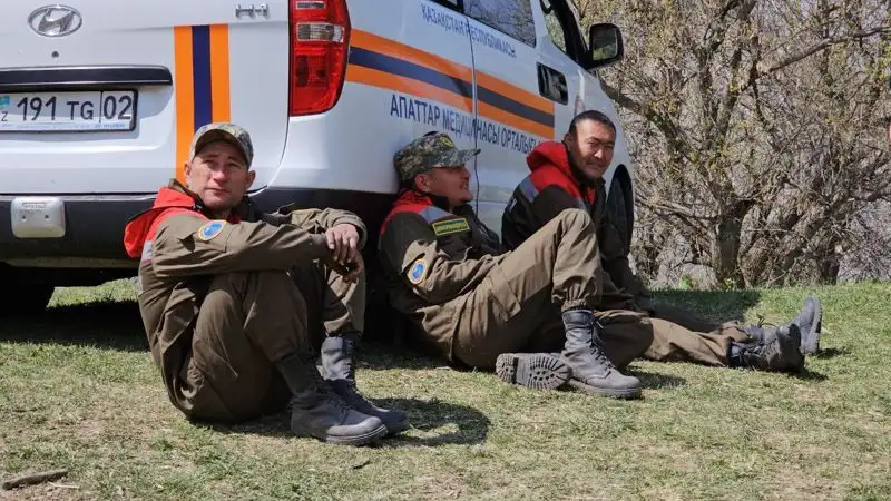 В лагерь, который разбили рядом с пожаром сотрудники ДЧС и национального парка, журналисты Zakon.kz приехали в воскресенье днем. Мужчины в камуфляжной форме обедали на траве.